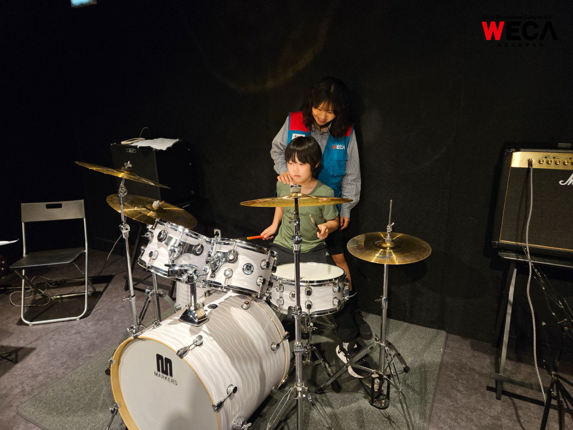 세계교육문화원은 지역아동센터 아이들에게 다양한 기회를 제공하기 위해 희망지원 프로젝트를 진행하고 있습니다. 아이들은 직접 밴드를 결성하여 기타, 베이스, 키보드, 드럼, 보컬 등 각자 원하는 파트를 맡아 전문 교육을 받았습니다.