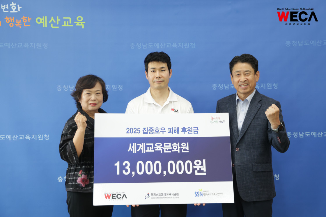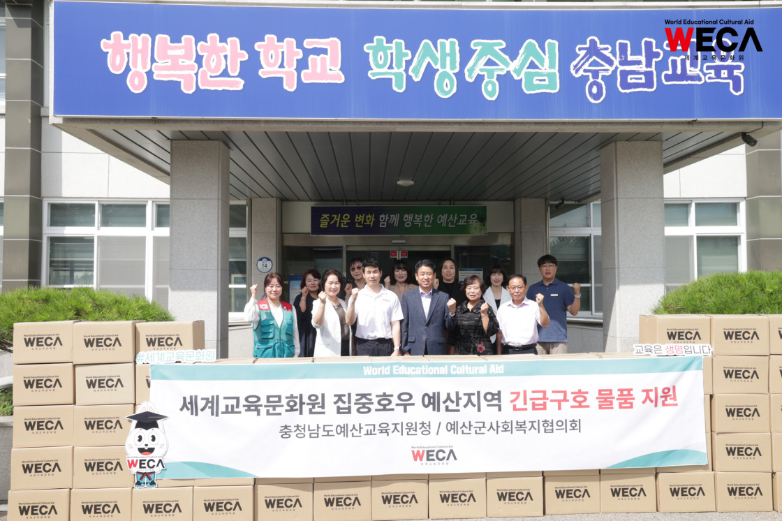 지난 9월 2일, 세계교육문화원 방정환 이사장은 예산군 집중호후 피해 지역에 식료품을 전달하고, 취약계층 교육환경 개선 후원금을 전달하였습니다.