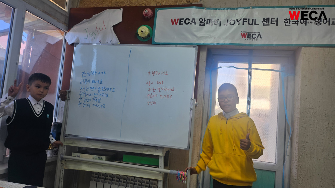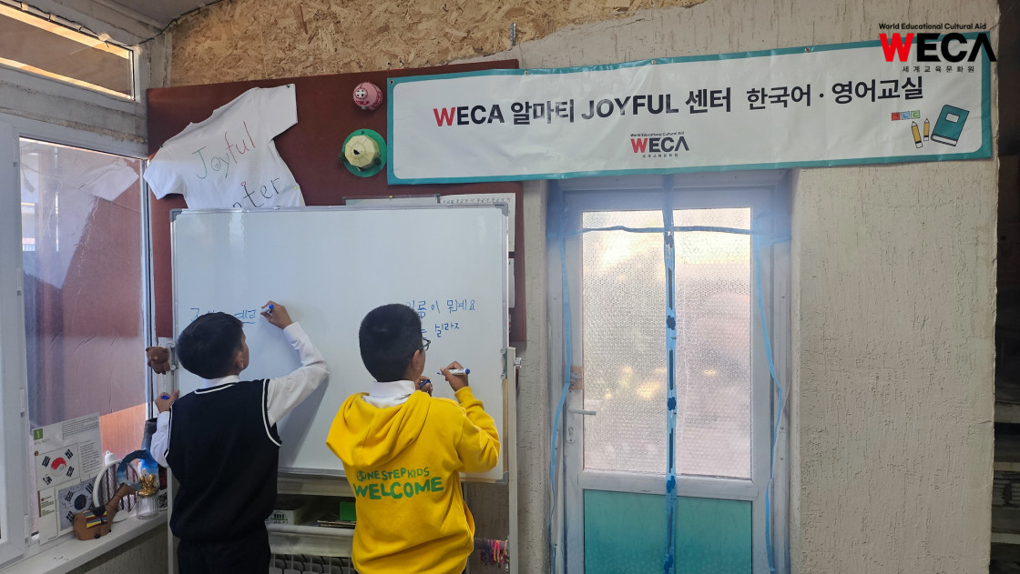 지금 카자흐스탄에는 한국어 열풍이 불고 있습니다. 하지만 교육의 기회가 희박한 이곳에선 한국어를 배울 방법이 없었는데요. 세계교육문화원은 WECA 조이플 센터를 운영하여 교육이 간절하지만 형편이 어려워 받지 못했던 아이들에게 한국어와 영어 수업을 지원하고 있습니다.