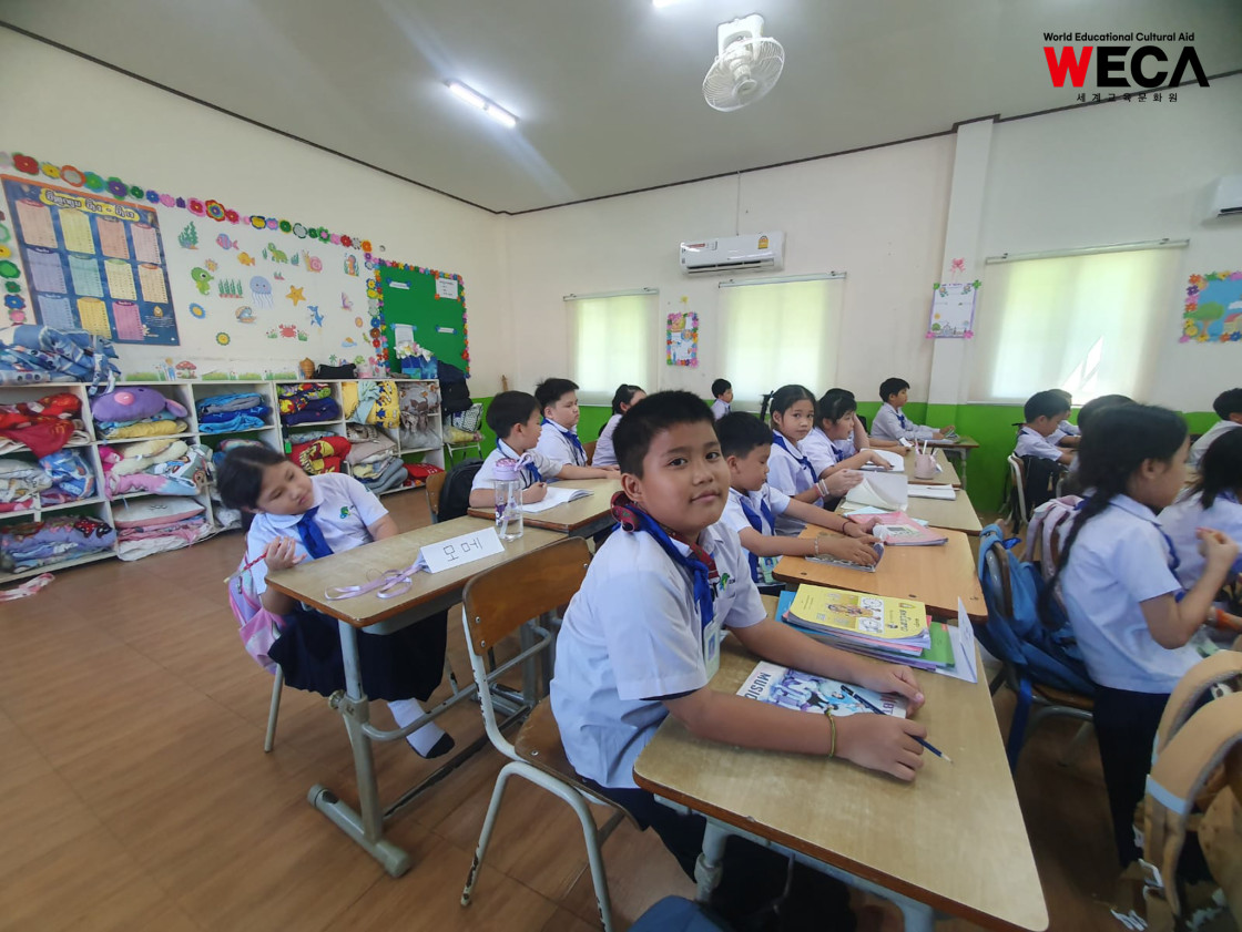 현재 싸완나켓 엘림학교 한국어 수업에는 3~5학년 총 68명이 수업을 듣고 있습니다. 아이들은 자음 7자(ㅇ,ㅈ,ㅊ,ㅋ,ㅌ,ㅍ,ㅎ)를 배우고 기초 회화를 익히는 중입니다. 교실 안에는 아이들의 웃음소리가 퍼졌습니다. 아이들은 허공에 글자를 그리며 발음을 따라 하고, 교실의 물건을 가리키며 한국어로 더듬더듬 대화했습니다.