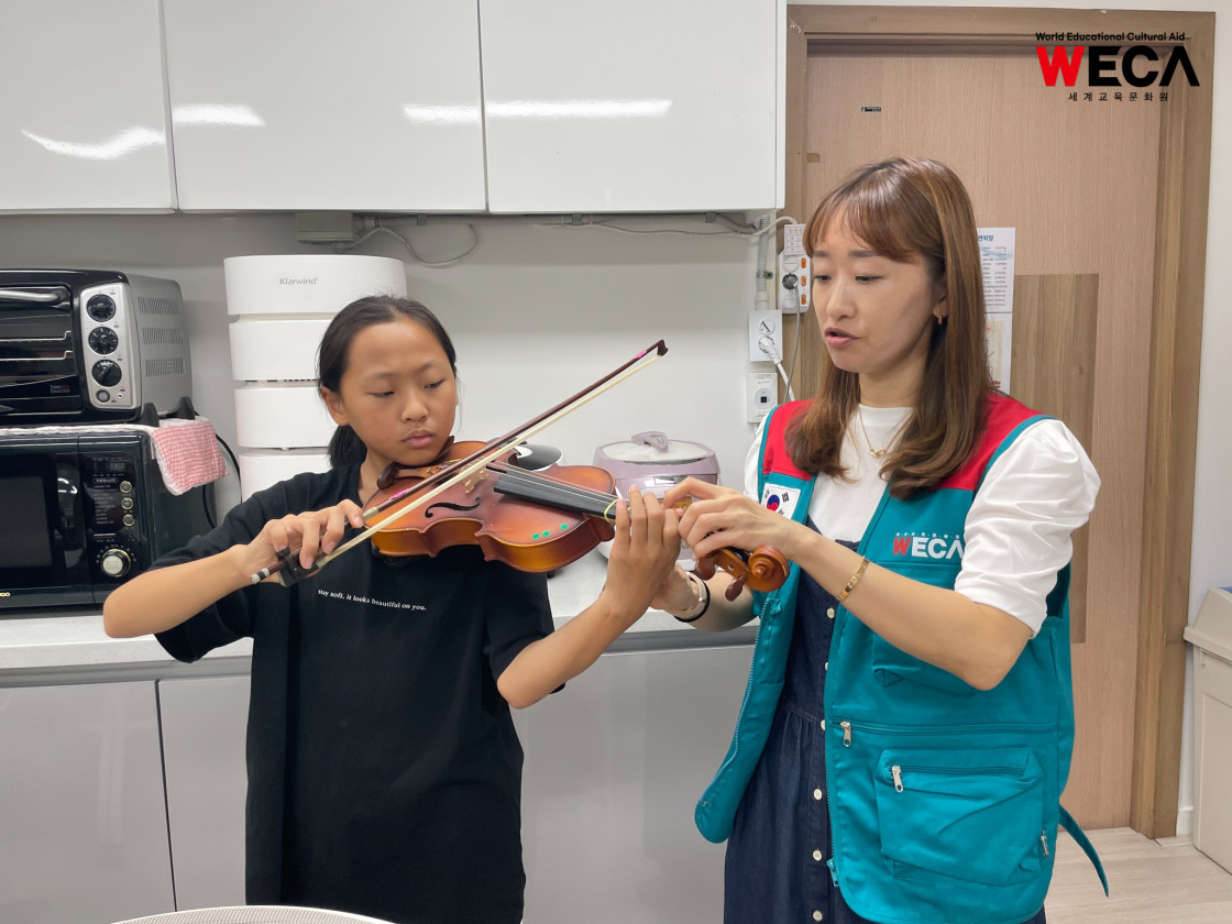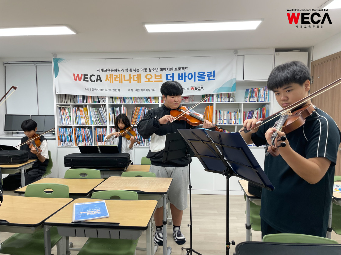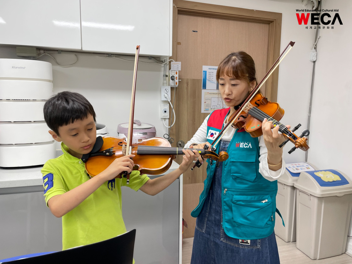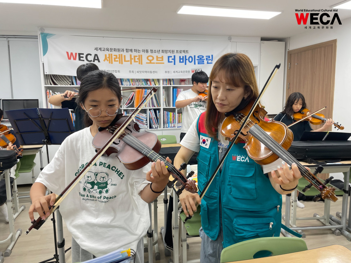 세계교육문화원은 문화예술을 접할 기회가 적은 지역아동센터 아이들을 위해 ‘세레나데 오브 더 바이올린(Serenade of Violin)’ 프로그램을 진행하고 있습니다. 이 교육은 단순한 악기 수업이 아니라, 아이들이 음악을 통해 자신을 표현하고 세상과 소통하는 법을 배우는 성장의 여정입니다.