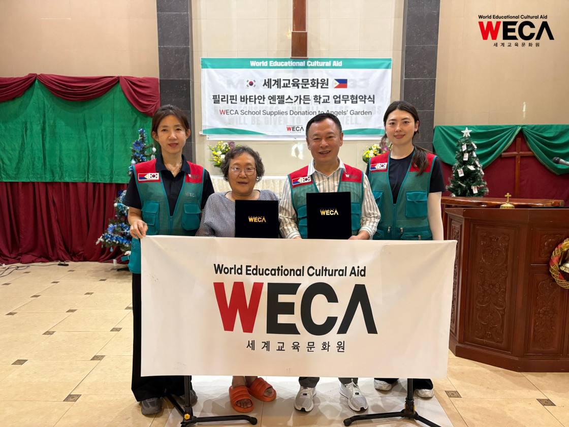 엔젤스가든 학교는 필리핀 교육부에서 정식 인가를 받은 학교지만, 증가하는 학생 수에 비해 교실 공간이 부족해 확장이 시급한 상황입니다. 태권도·합창 등 문화교육 프로그램을 운영하고 있으나 안정적인 재정이 부족해 지속 운영에 대한 고민도 있었습니다. 그럼에도 학교는 “아이들에게 문화예술이 주는 긍정적 영향이 크다”는 확신을 갖고 있었고, WECA와의 협력을 적극 희망해 이번 방문에서 공식적으로 업무협약(MOU)을 체결했습니다. 앞으로 양 기관은 교육·문화 프로그램, 학습 환경 개선을 위한 공동 지원을 이어갈 예정입니다.
