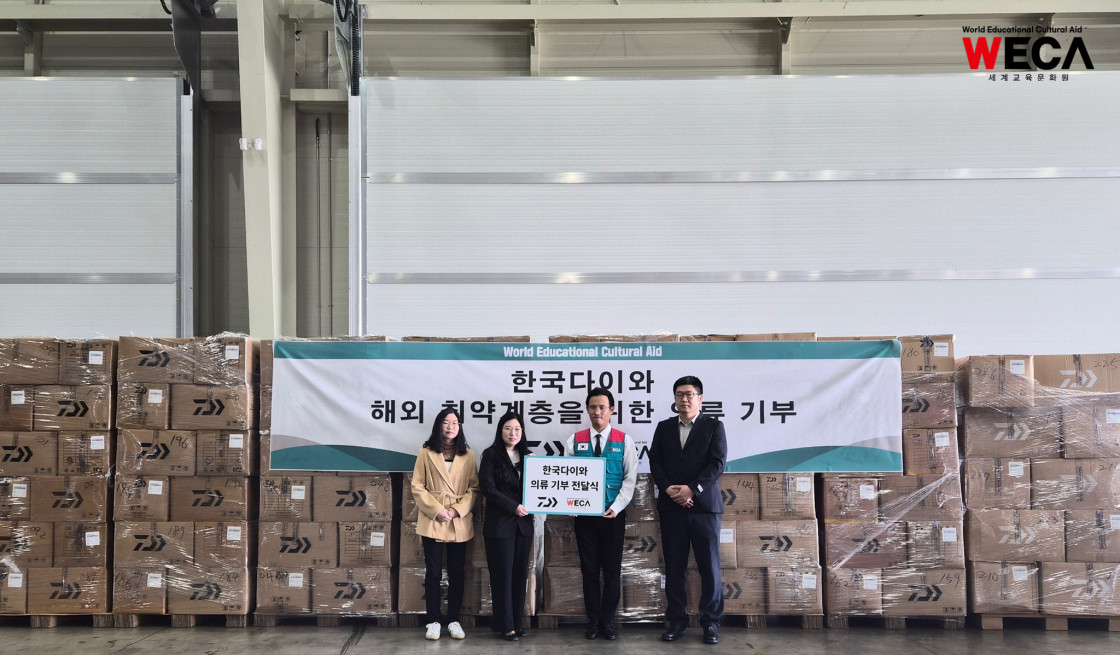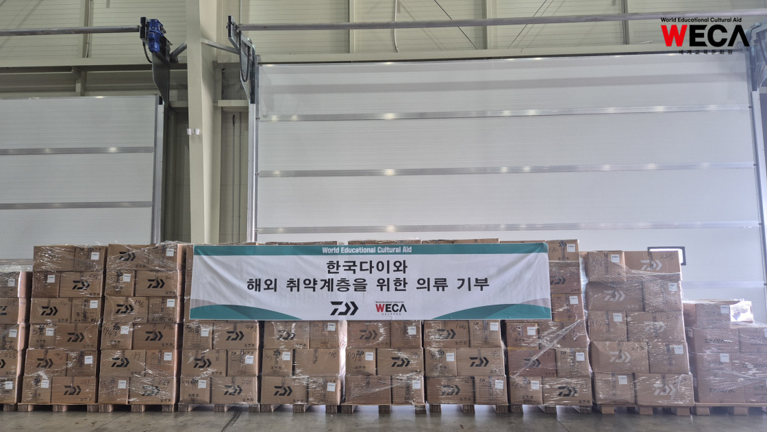 세계교육문화원(WECA)은 최근 한국다이와(대표 최학모)로부터 약 14억 원 상당의 사계절 의류 기부를 받았습니다. 재킷, 티셔츠, 팬츠 등 다양한 시즌 아이템이 포함된 이번 기부는 WECA를 통해 해외 취약계층 아동과 도움이 필요한 지역사회에 따뜻하게 전달될 예정입니다.