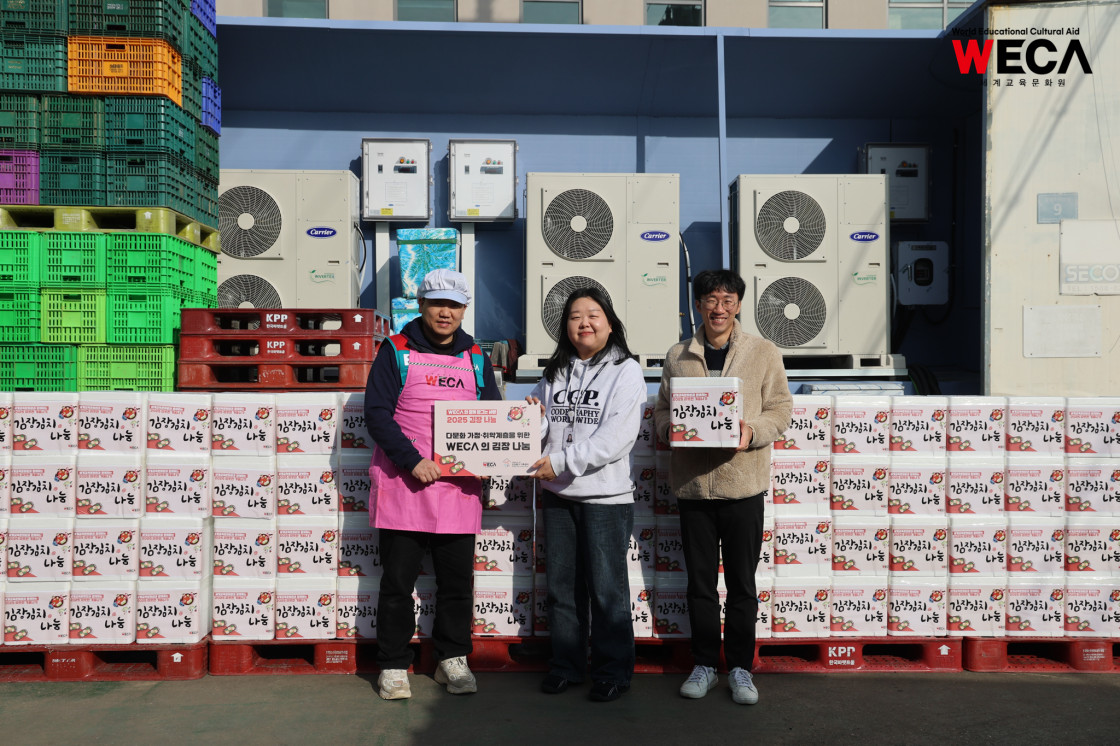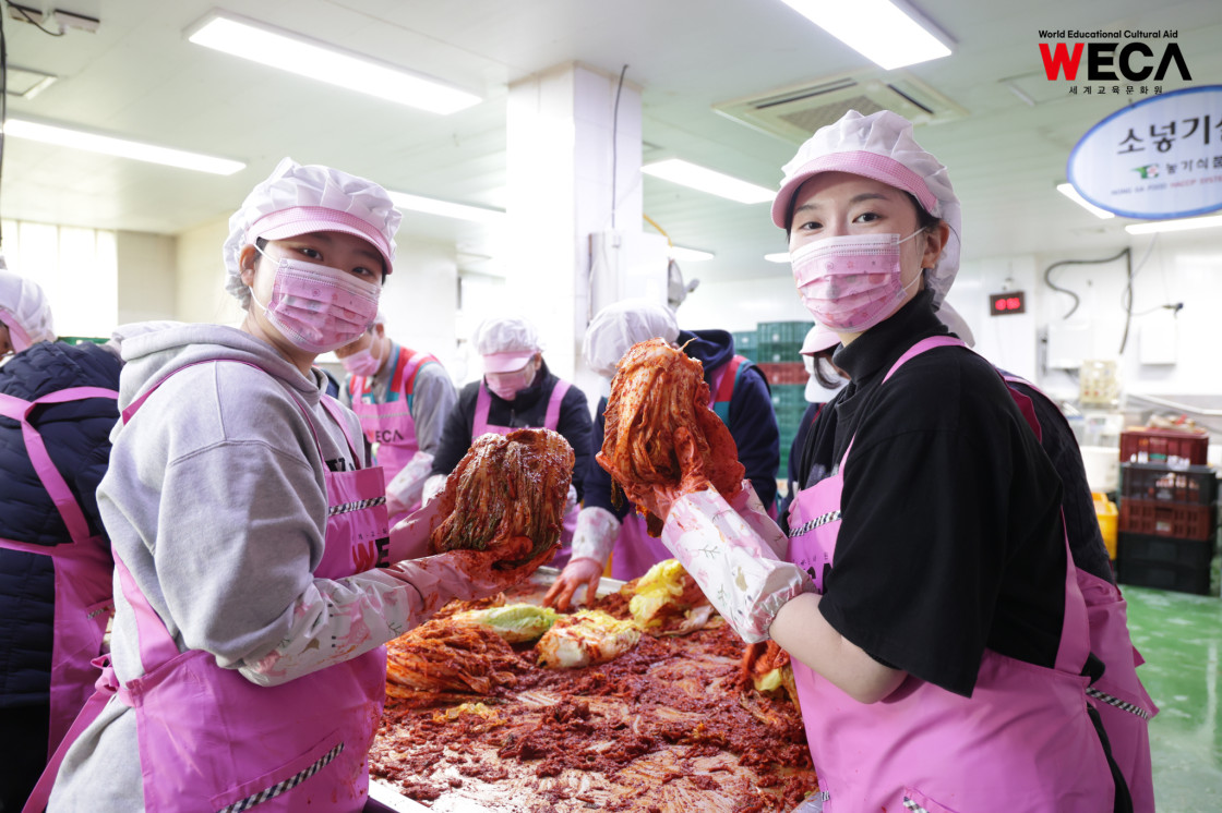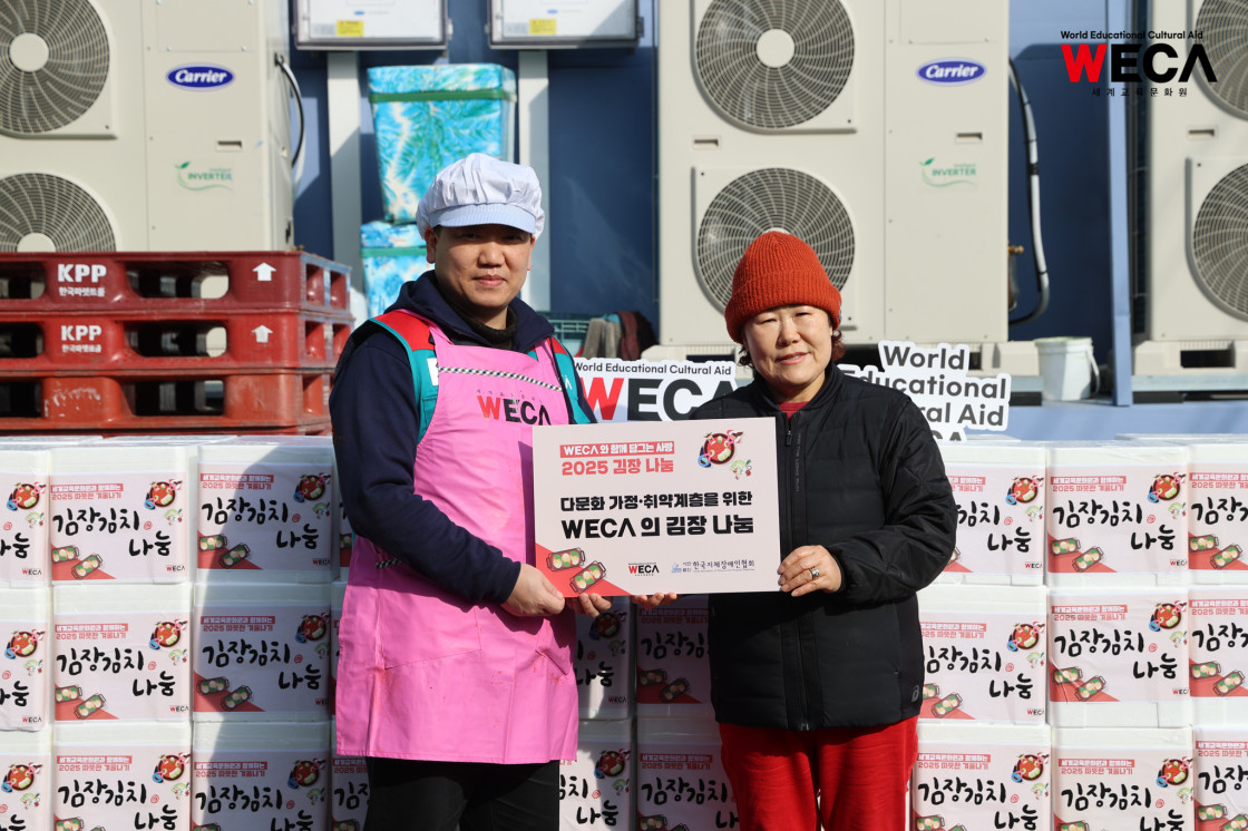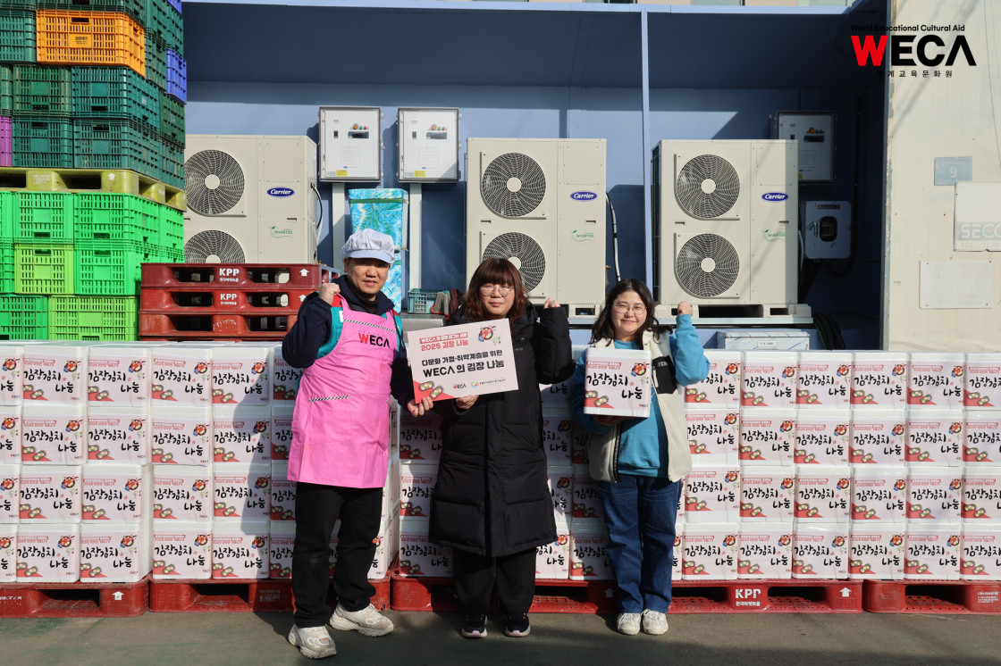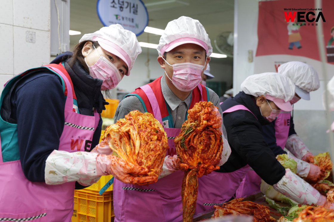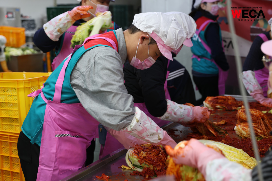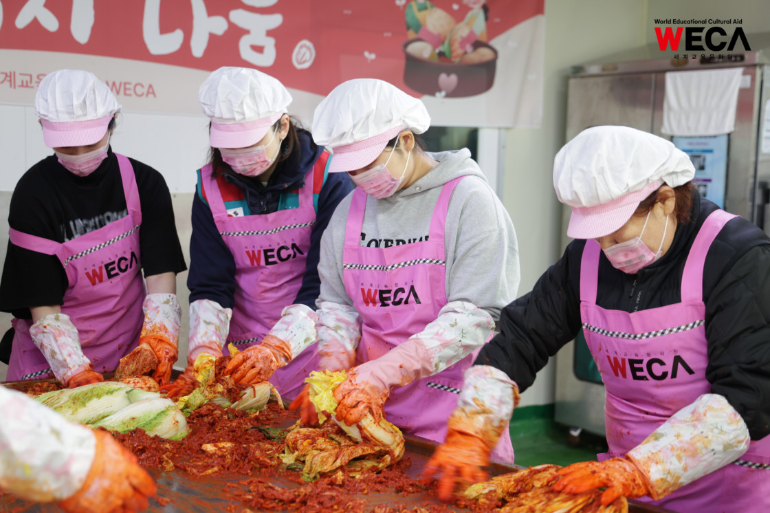 세계교육문화원은 인천 연수구에서 WECA와 함께 담그는 사랑의 2025 김장나눔 봉사활동을 진행했습니다. 이번 활동은 겨울철 반찬이 부족해 끼니를 챙기기 어려운 다문화가정과 장애인 가정에 따뜻한 식탁을 전하고, 나눔의 가치를 함께 실천하기 위해 마련되었습니다. 이날 현장에는 WECA 임직원과 서포터즈, 자원봉사자 등 총 13명이 참여했습니다. 봉사자들은 사전 오리엔테이션을 통해 김장 봉사의 취지와 위생 수칙을 공유한 뒤, 위생모와 앞치마를 착용하고 절인 배추에 김장 속을 버무리고 포장하는 작업에 정성껏 임했습니다.