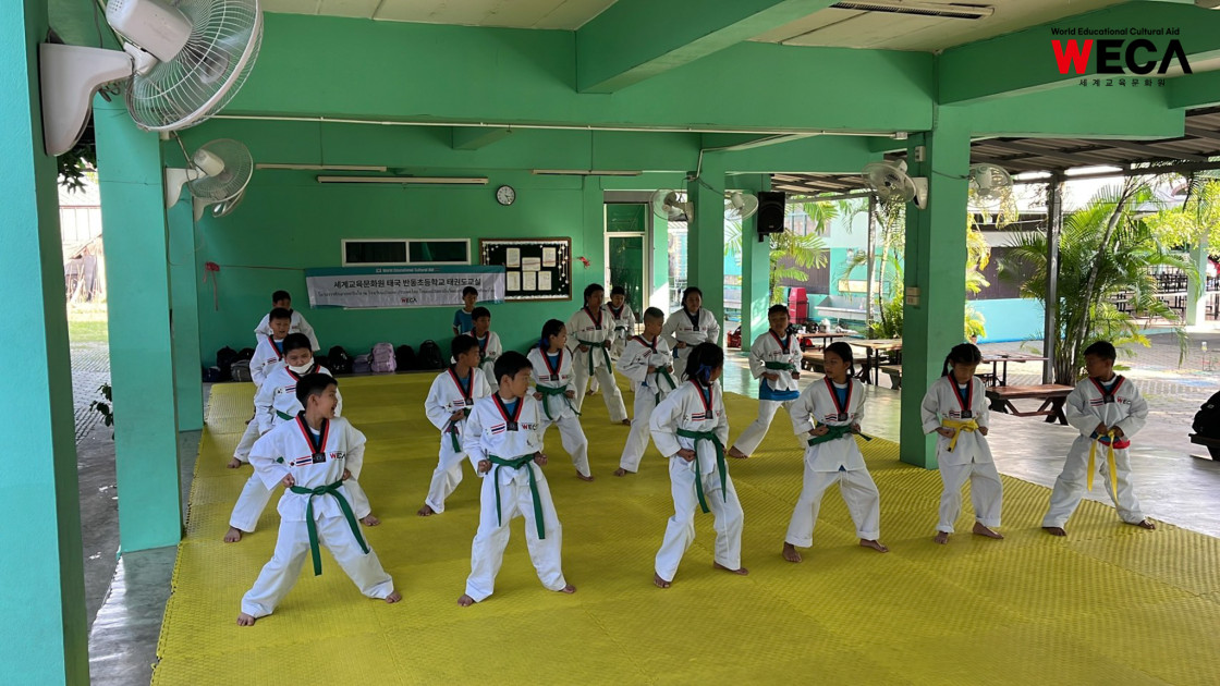 태국 치앙마이에 위치한 반동초등학교에서는 초등학교 5학년 전체 학생을 대상으로 태권도 수업이 진행되었습니다. 이번 수업은 아이들이 태권도의 기본기를 다지고, 신체 균형과 집중력을 기를 수 있도록 구성되었습니다.