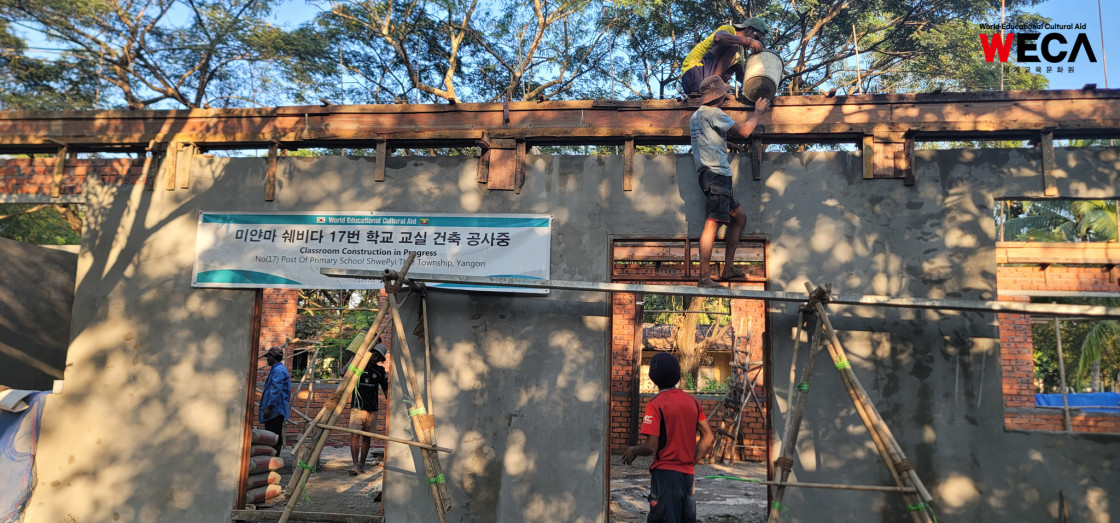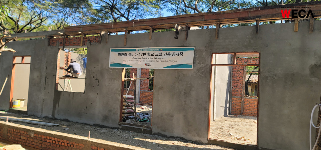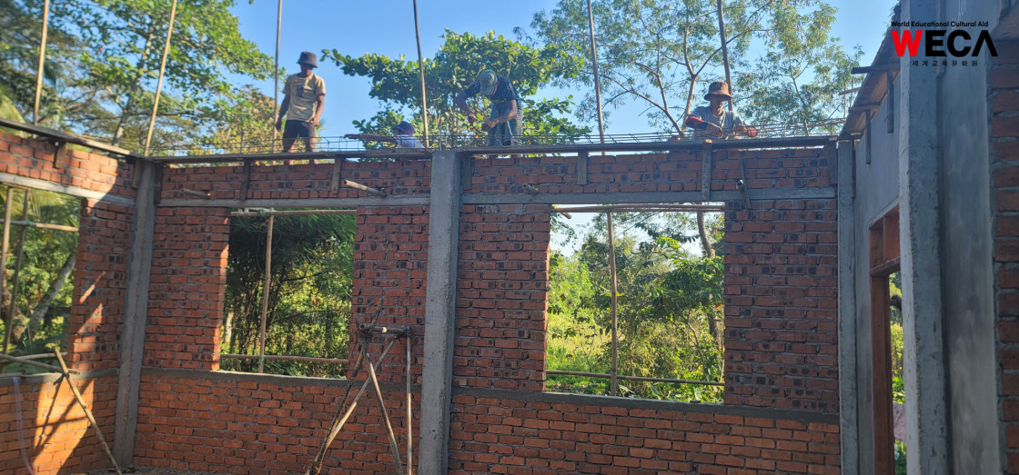 미얀마 WECA 17학교에서는 태풍과 지진으로 무너진 교실을 다시 세우기 위한 신축 공사가 계속해서 진행되고 있습니다. 아이들이 안전한 공간에서 공부할 수 있도록, 현장에서는 하루하루 책임감 있는 공정이 이어지고 있습니다.
