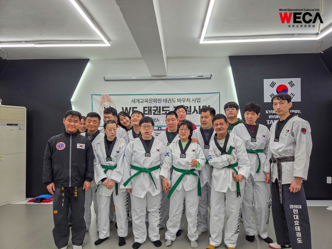 세계교육문화원은 경희대현대효태권도와 협력하여 국내 장애인을 대상으로 한 태권도 바우처 사업을 운영하고 있습니다. 이번 사업은 경제적·환경적 제약으로 체육 활동 참여가 어려운 장애인들이 태권도를 통해 신체 활동의 즐거움과 성취감을 경험할 수 있도록 돕기 위해 마련되었습니다. 참여자들은 전문 지도진의 체계적인 지도를 통해 기초 체력 향상은 물론, 균형 감각과 집중력, 자신감을 차근차근 키워가고 있습니다. 태권도 수업은 개인의 특성과 수준을 고려해 안전하게 진행되며, 단순한 운동을 넘어 규칙과 예절을 배우고 스스로를 믿는 힘을 기르는 시간이 되고 있습니다.